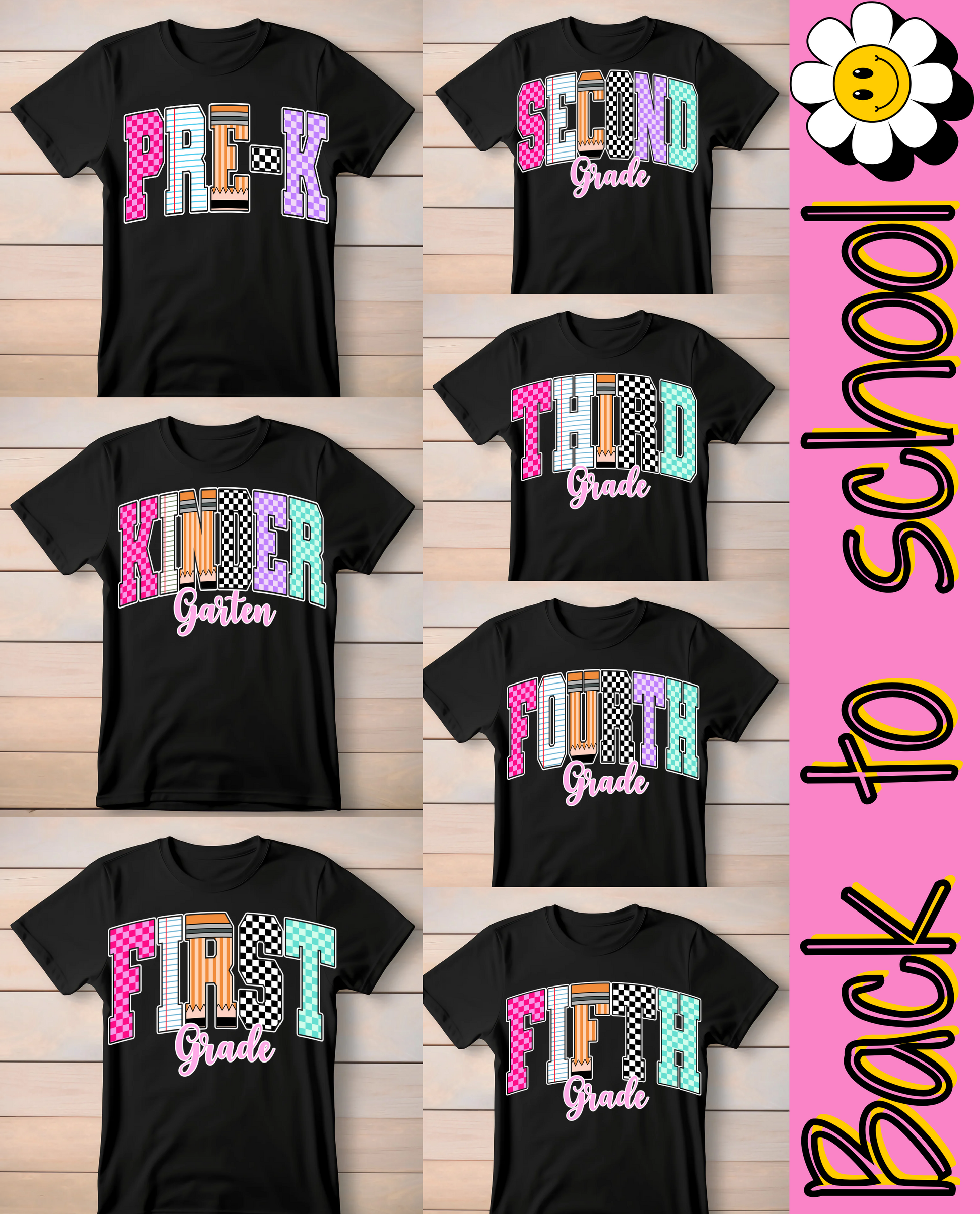 Retro checkered prek-5th 🩷🧡